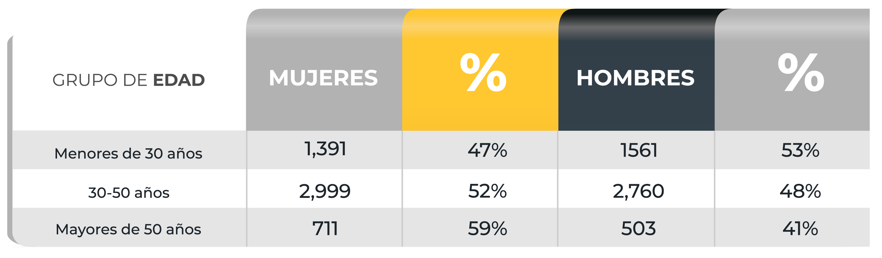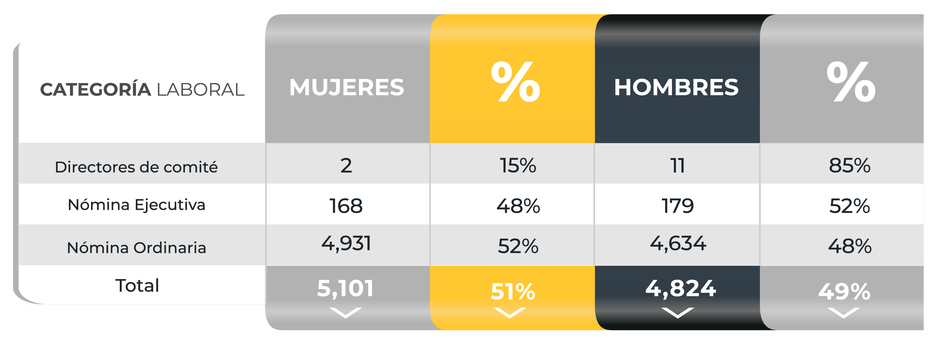 Para el final de 2022, nuestro equipo estaba integrado por 9,925 colaboradores, distribuidos de la forma siguiente: